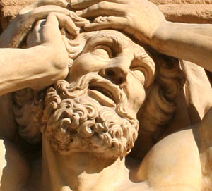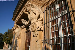 L'atlante soutient la facade du pavillon Vendome comme dans la mytologie le titan Atlas condamné par Zeus suppporte les cieux jusqu'à la fin des temps, c'est pour ca qu'il a l'air de faire un effort, il maintient son front et sa tete avec ses mains car c'est "lourd", il fait des efforts, as tu vu ses muscles comme ils sont tendus ! |