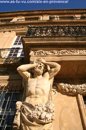 L'escalier a double revolution, un des plus elegants de la serie aixoise, date du debut du 18 ieme sielcle et allie l'harmonie du volume général à la grandeur du decor. La rampe en fer forgé, les scultures en gypseries, sphinx, guirlandes, putti, aigle confere a l'ensemble une majesté baroque.