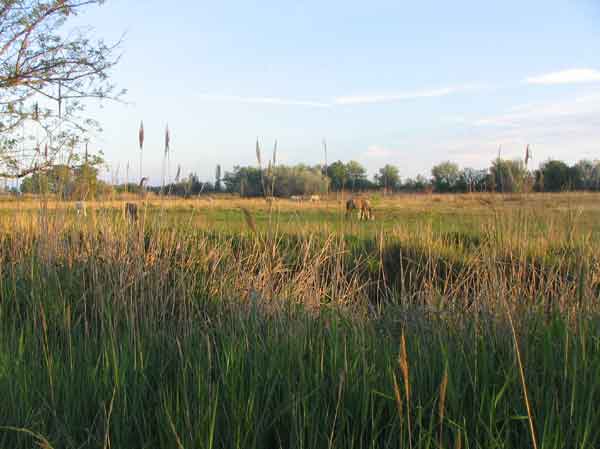 Villes, espaces, animaux et plantes en rapport avec la Camargue: Arles - Saintes-Maries-de-la-mer - Port-Saint-Louis - Grau-du-Roi - Aigues-Mortes - Beaucaire - Meditérranée - Rhône - Delta du fleuve - Marais - Parcs naturels - Cheval - Taureau - Salicorne - Camargue - Camargue