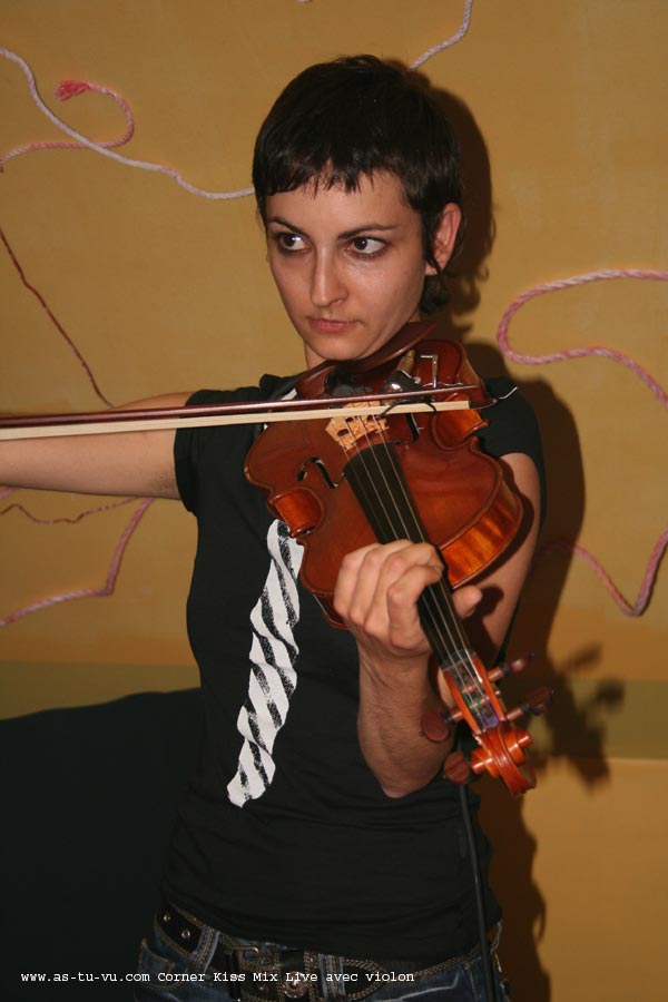 Soirée Korner Kiss avec performance de DJ, violon et collage hier soir au Cent Fa Son's 21 rue Lisse de Cordeliers.
